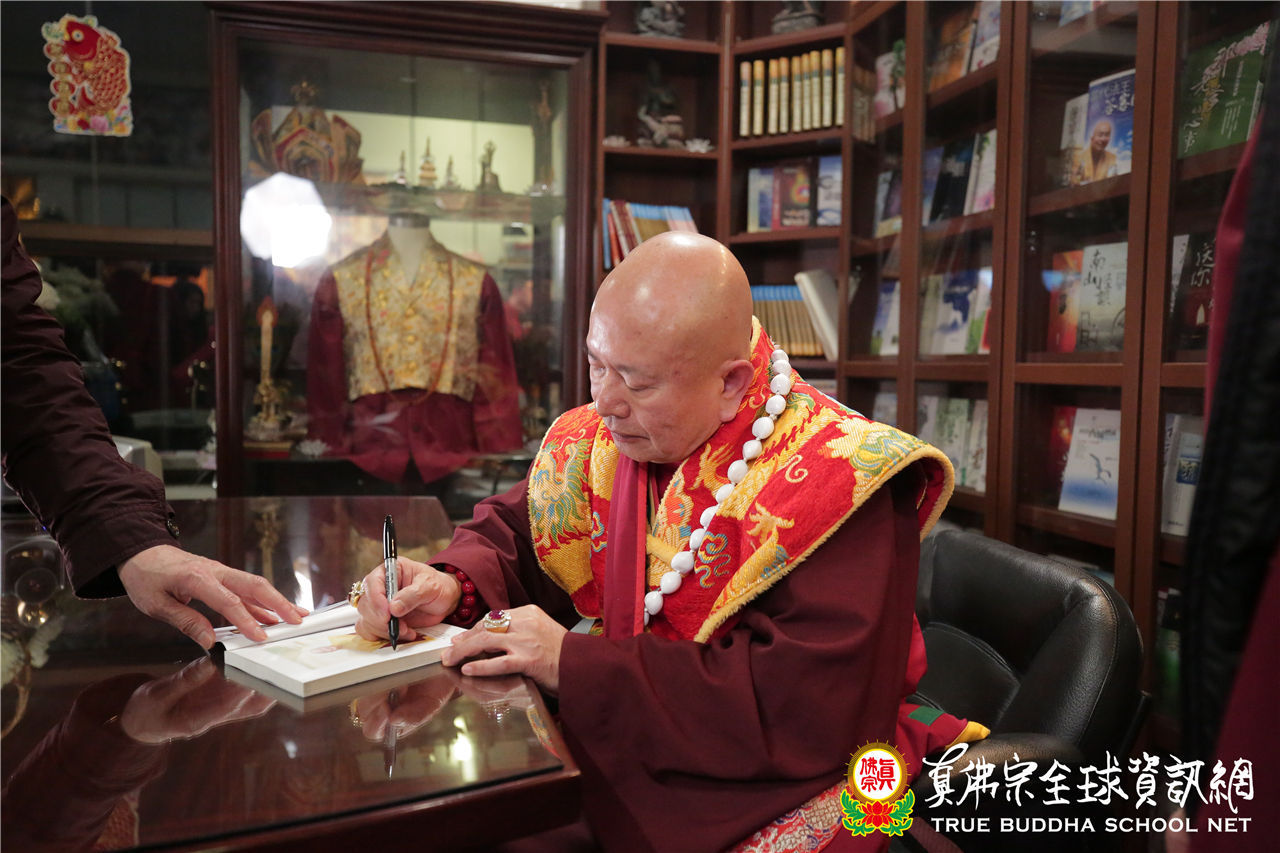 師尊在精彩的開示後,又繼續為大家加持賜福。師尊的著作第275册【解脱道口訣】出版了,師尊親切的為同門簽書留念。衆人歡度過一個充實的大年夜。