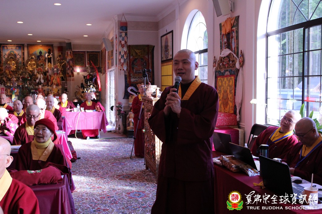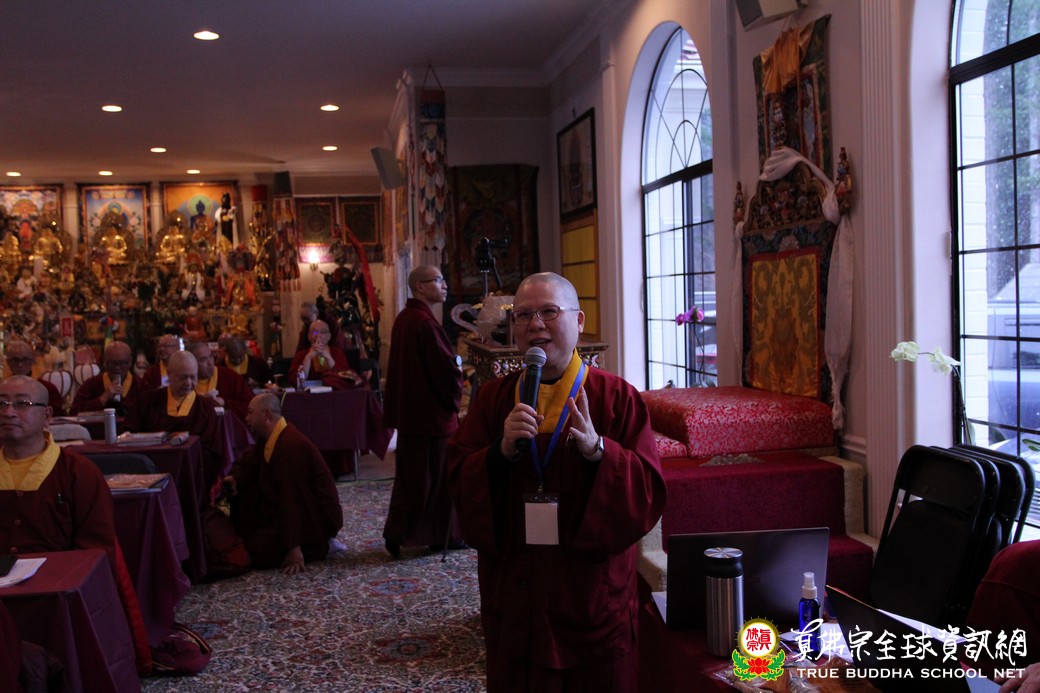 開會第二天早上,首先是教育處長蓮訶上師報告,全方位真佛教育進展。