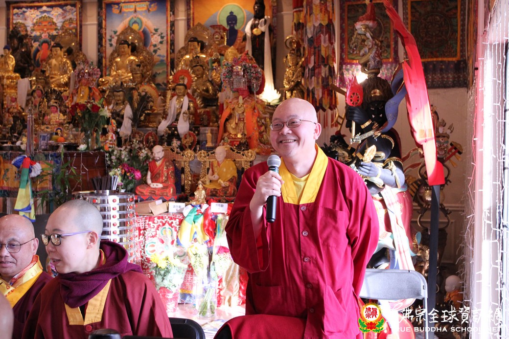上午11點根本上師蓮生聖尊親自蒞臨,上師們轉移到護摩殿和弘法人員研習班大眾一起,聆聽根本上師的教誨及摩頂加持。