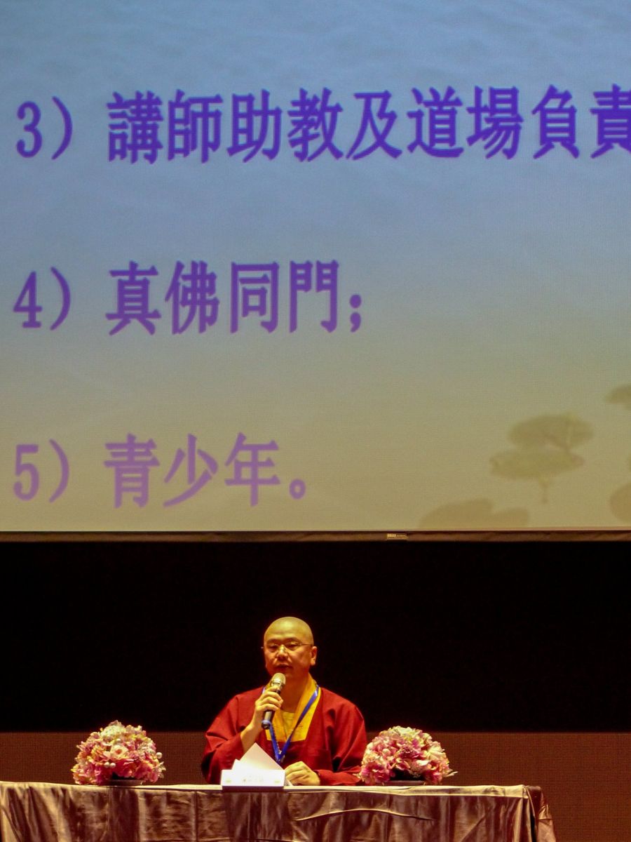 接下來是由法務處處釋蓮東金剛上師為大家講解弘法人員應當遵守的戒律威儀,弘法範圍及守則。課程主要針對講師、助教、及道場弘法人員為主講目標,並為大家準備及講解最新的章程。