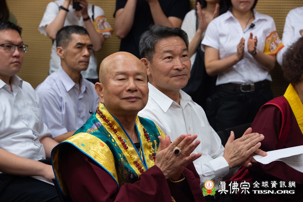 主辦單位大義學會的林立仁講師也特別上台做法務報告。講師先感謝聖尊的慈悲傳法和師母蓮香上師細心協助,目前「大義雷藏寺」建在高雄市岡山區嘉華路上,現正進行第四樓層的結構工程,預計2019年底可將完成,接著是水電、地板,屋頂及內部裝修,願大眾協助,讓大義雷藏寺盡早落成,屆時望能再度恭請根本上師前來開光與安座,眾同門一起見證。