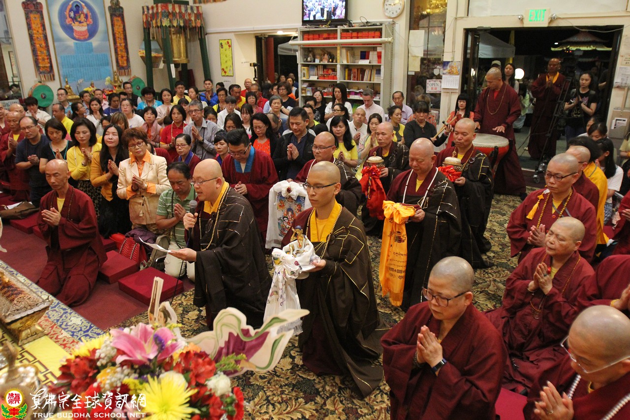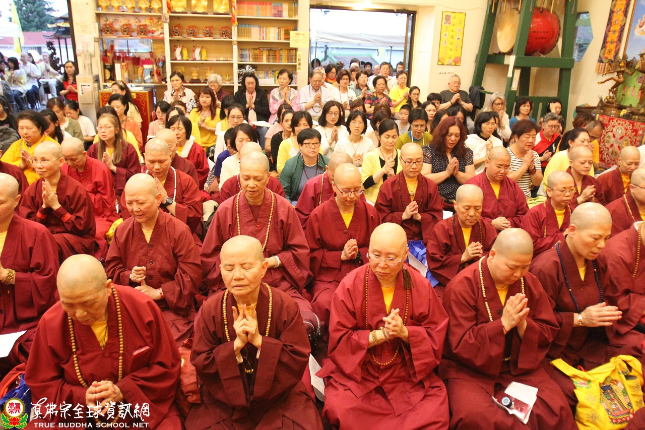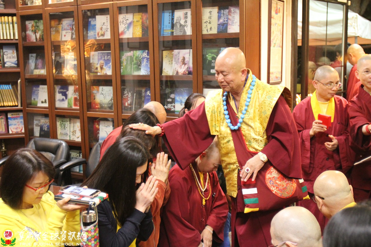 師尊說,當在大家唸誦經文時,見到很多般若光下降。玄玄上人不是指ㄧ個人,是原始的無上意識。玄玄上人傳道給木公東華帝君,東華帝君傳道給瑤池金母,瑤池金母在娑婆世界找到師尊,才有現在的TRUE BUDDHA SCHOOL。慈航大士也是觀世音菩薩,大成至聖興儒治世天尊就是孔子。儒教、道教、佛教ㄧ起來讚揚、讚嘆瑤池金母大天尊。瑤池金母說,要解脱,ㄧ個是禪定、ㄧ個是智慧,智慧不是ㄧ般的知識,而是佛的智慧,如來的佛慧,用佛的智慧來做禪定,才能到達彼岸.就是解脱。師尊説,人生没什麼事,重點在能不能解脱。我們大家坐在這裏,進入真佛宗,為了就是要解脱,人的生死不重要,解脱才最重要。師尊説自己最重要的大事就是能不能夠到佛國淨土,成為佛,解脱到不退轉的境界。我們要學習禪定和智慧,入三昩地從有相的三昧地到無相的三昧地,才能得到真正的解脱。只要解脱,佛國是一念之間就到了.
