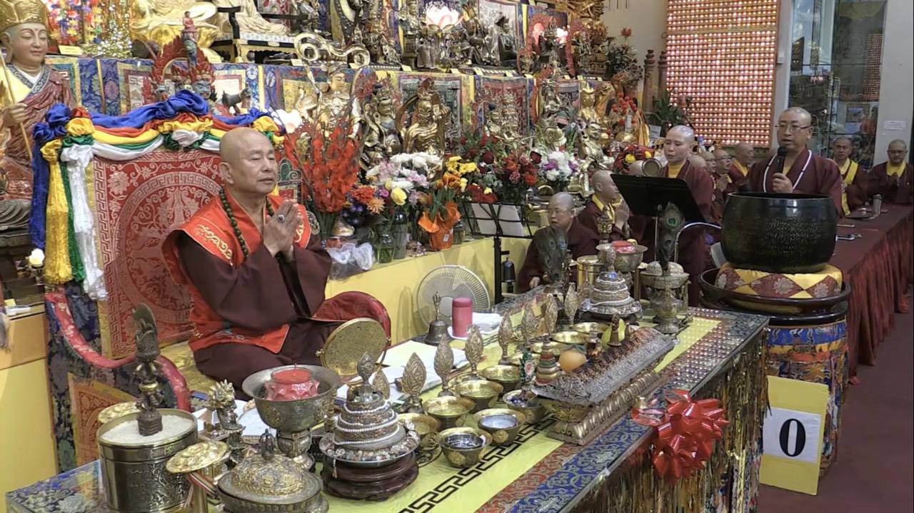 會後,蓮生活佛與大眾同唱佛號,並慈悲賜授「皈依灌頂」、加持「大悲咒水」及佛像文物加持「開光」,並為虔誠弟子一一摩頂加持,同修圓滿吉祥。