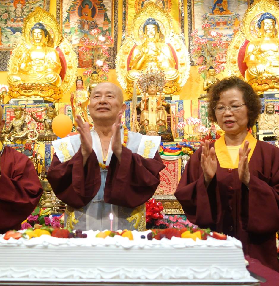 會後,蓮生活佛與大眾同唱佛號,並慈悲賜授「皈依灌頂」、加持「大悲咒水」及佛像文物加持「開光」後,恭請師尊切生日蛋糕,同唱生日快樂歌,並為虔誠弟子一一摩頂加持,同修圓滿吉祥。