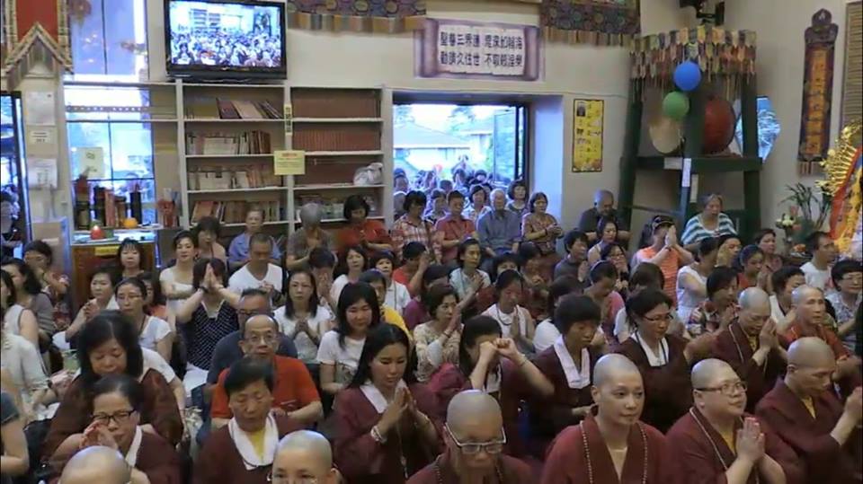 同修之中,大家齊唸「請佛住世祈願文」,並以今日同修功德迴向根本上師 蓮生活佛 佛體安康,長壽自在,生日快樂。