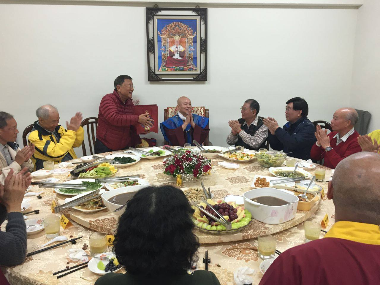 餐後,「台灣雷藏寺」也準備了精緻禮物由蓮生活佛贈送給同學,大家一起以「果汁代酒」,舉杯互道祝福;大家還以標準的「敬禮」向蓮生活佛表示禮敬與祝福,在歡笑中,也為今天的相聚,劃下最圓滿而溫馨的句點……。