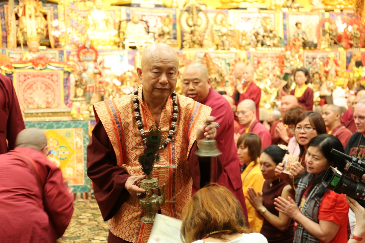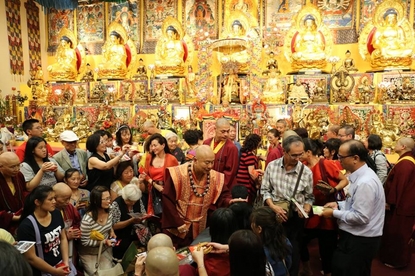 最後,蓮生活佛 盧勝彥與大眾同唱佛號,並慈悲賜授「皈依灌頂」、加持「大悲咒水」及佛像文物加持「開光」,並為大眾簽書;同修活動在蓮生法王一一為眾弟子們摩頂加持中,圓滿吉祥。