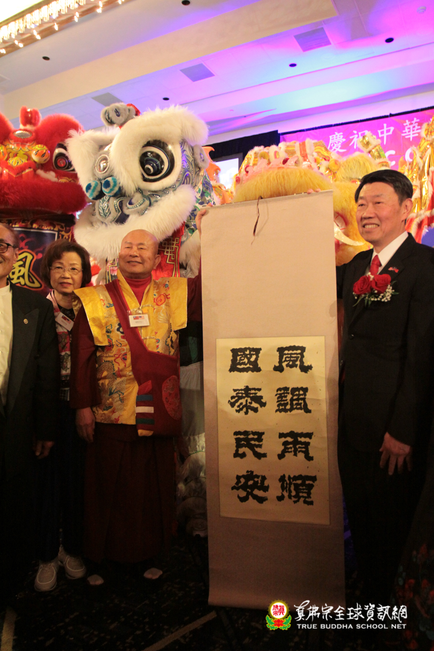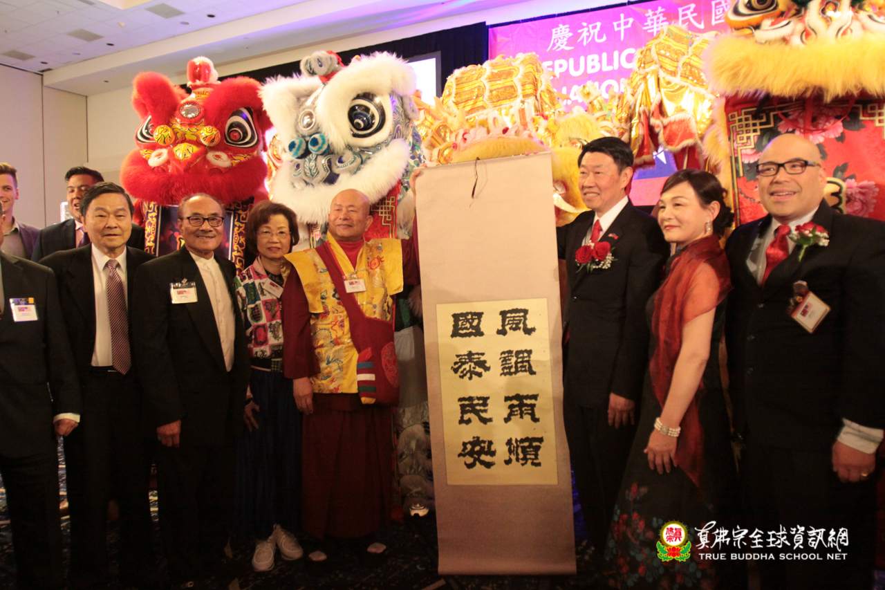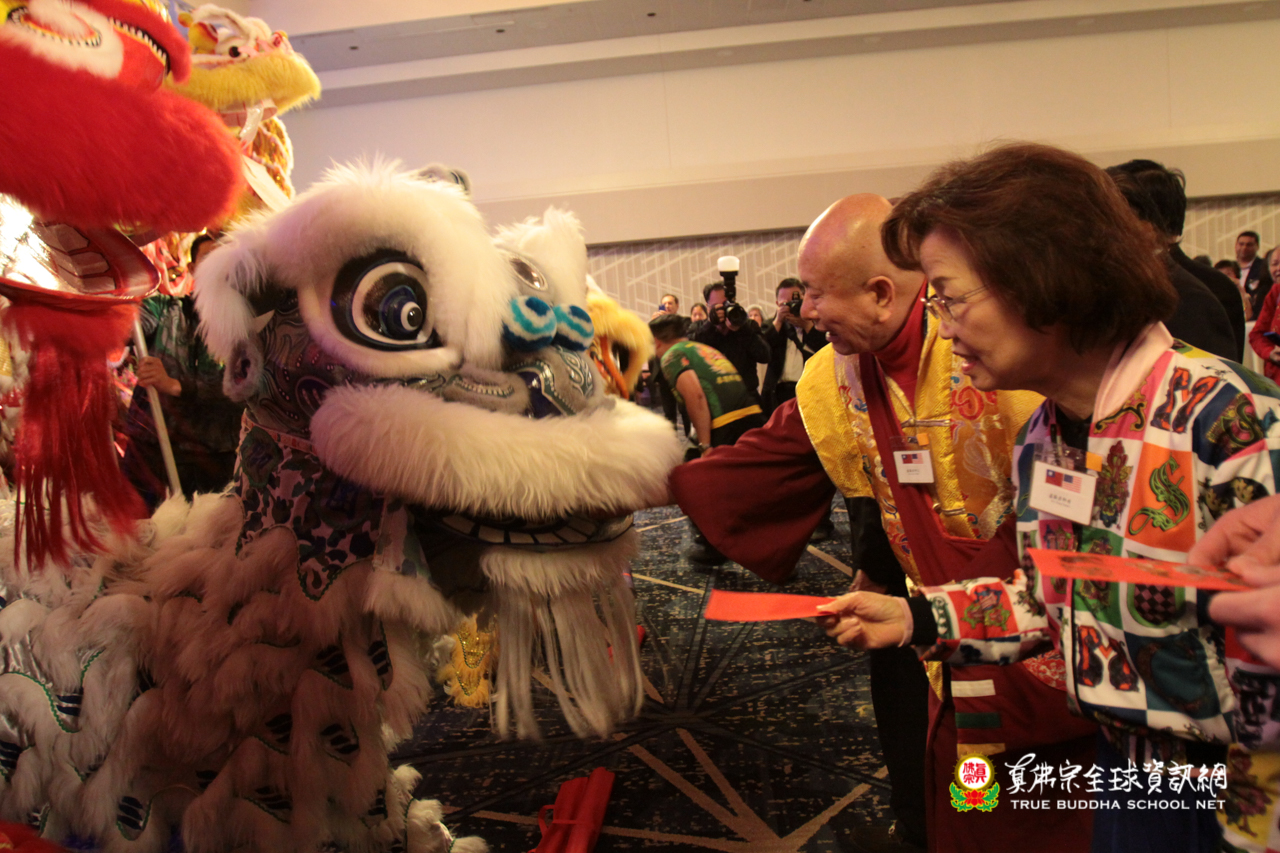 首先開場的是熱鬧喜慶的舞龍、舞獅,聖尊蓮生活佛與師母蓮香上師受邀將象徵吉祥的紅包賜福給醒獅團。宴會會場裝飾有美輪美奐的雙十冰雕,主辦單位更是準備了大型的國慶蛋糕,特別邀請聖尊蓮生活佛、師母蓮香上師,與台北經濟文化辦事處處長范國樞先生伉儷以及各界政要一起切蛋糕,大家一齊祈求中華民國國泰民安、風調雨順。