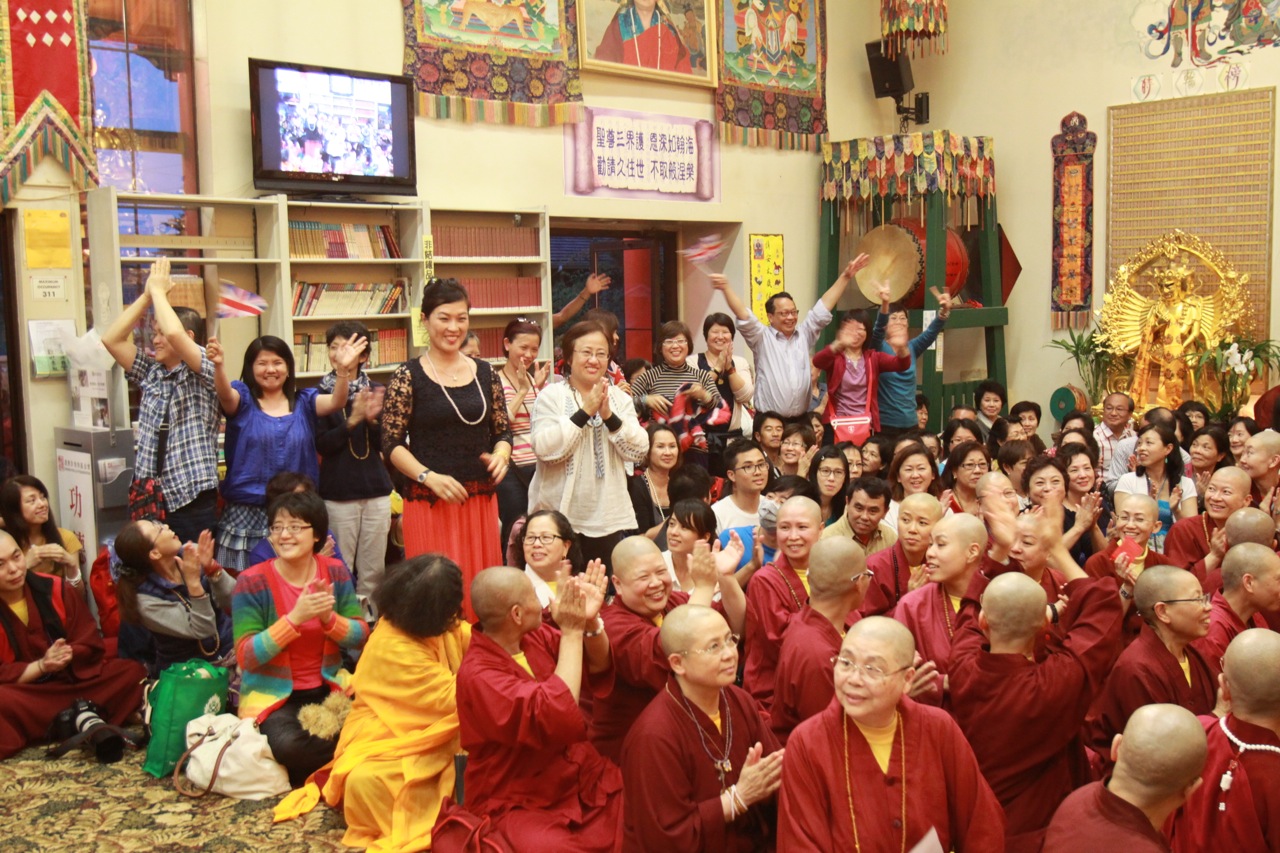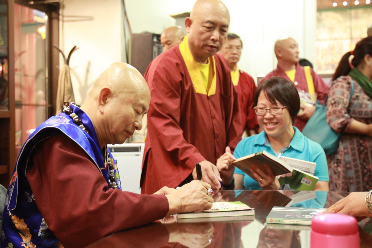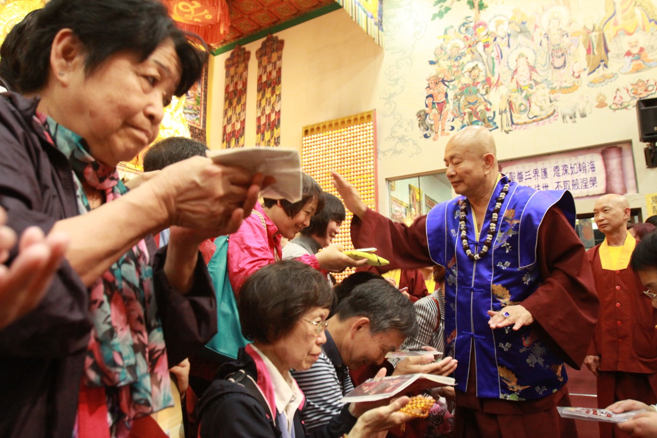 最後,蓮生活佛 盧勝彥與大眾同唱佛號,並慈悲賜授「皈依灌頂」、加持「大悲咒水」及佛像文物加持「開光」,並為大眾簽書;同修活動在蓮生法王一一為眾弟子們摩頂加持中,圓滿吉祥。