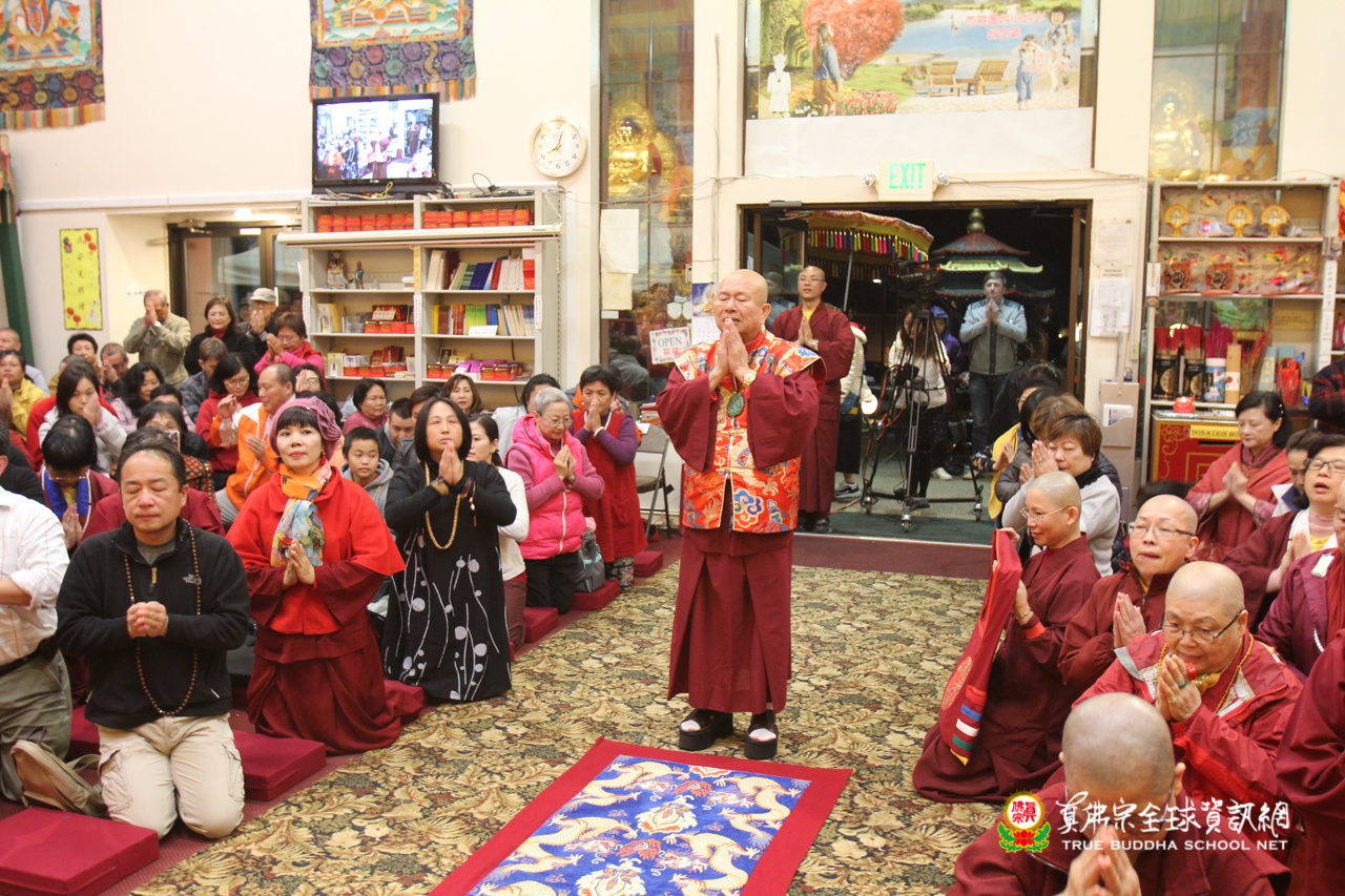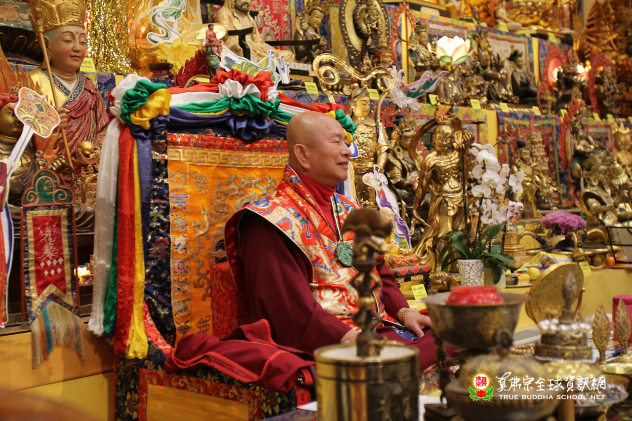 聖尊精闢的法語開示後,雷藏寺唱誦組法師們帶領大眾唱誦阿彌陀佛聖號,然後,聖尊為求皈依的信眾賜受灌頂,加持大悲咒水,開光佛像。臨行前,聖尊還摩頂加持大眾。感恩根本上師慈悲將佛法的法流灌溉每一位眾生的心靈,讓我們能心領神會佛法的真實見!