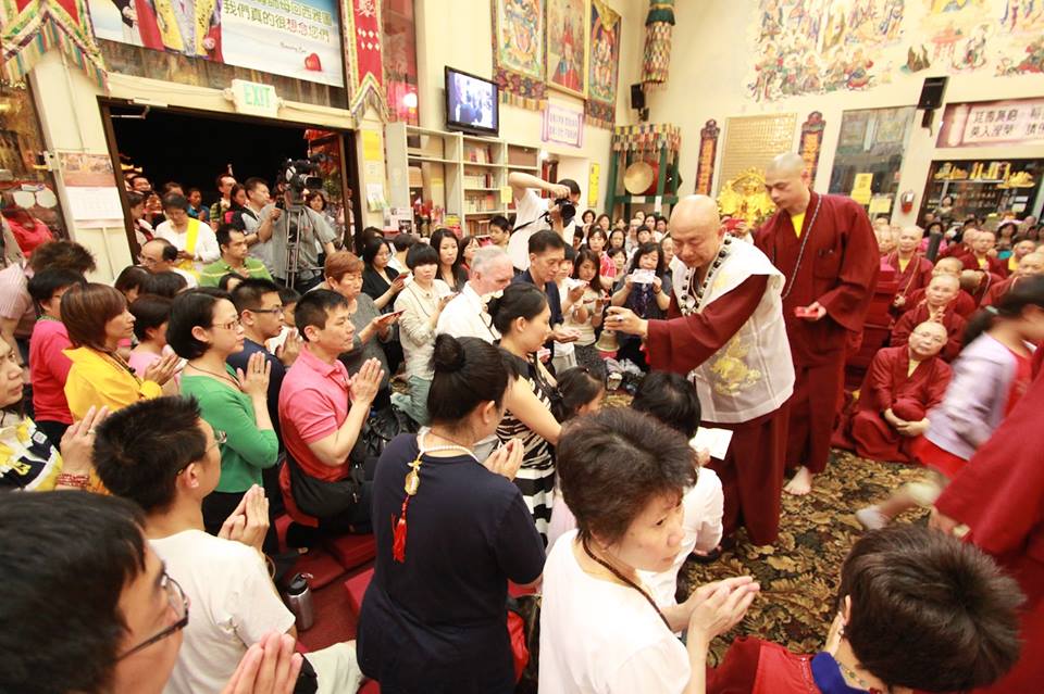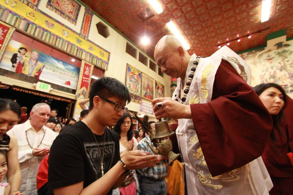 會後,蓮生活佛 盧勝彥法王與大眾同唱佛號,並慈悲賜授「皈依灌頂」、加持「大悲咒水」及佛像文物加持「開光」, 同修在蓮生法王一一為眾弟子們摩頂加持中,圓滿吉祥。