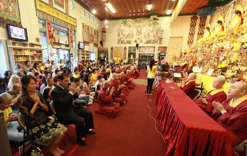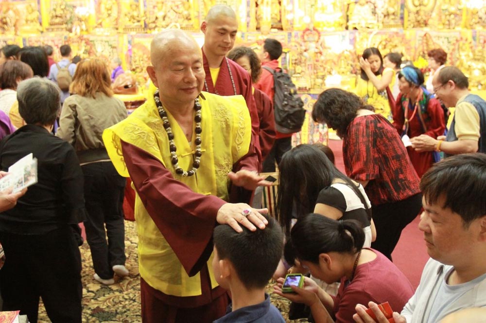 開示完,大眾抱以熱烈掌聲,感恩蓮生法王的寶貴開示,最後,蓮生活佛 盧勝彥法王與大眾同唱佛號,並慈悲賜授「皈依灌頂」、加持「大悲咒水」及佛像文物加持「開光」,同修活動在蓮生法王一一為眾弟子們摩頂加持中,圓滿吉祥。