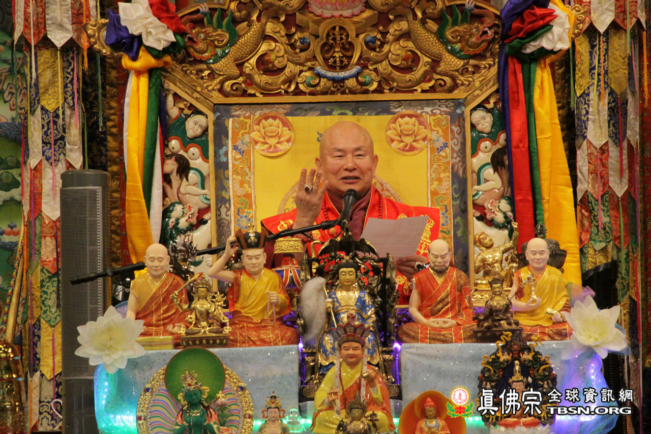 由於防疫方針,全球真佛弟子只能在網路上看到法王,「現在大家都可以看到我,師尊用眼睛一看,也看了好幾千萬的弟子,在聽師尊說法」,法王告訴大家,昨晚修法時和臨睡的時侯修法,看到阿彌陀佛、觀世音菩薩,另外,特別看到綠度母,「可見綠度母、除瘟疫度母、二十一度母來支持我們今天的護摩,所以綠度母經常都是幫助我們的」。