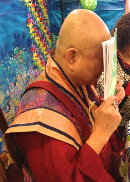 17日晚,由《宗委會》 釋蓮寧上師恭呈所有持咒弟子的名單及總遍數供養 師尊,並轉達弟子們「請佛住世」的熱烈之心,師尊看了以後很感動,也很感謝所有弟子的虔敬之心。師尊立即將所有持咒名單及總遍數的「請佛住世圖」放在天心加持,迴向十方法界,同霑法喜,並慈悲賜下親筆簽名!