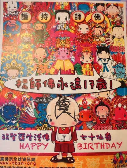 當師尊一看到Q版的諸佛菩薩們也都來祝福生日時,師尊不但開心的笑了,並且馬上在「Q版師尊的天心處」簽名賜福!