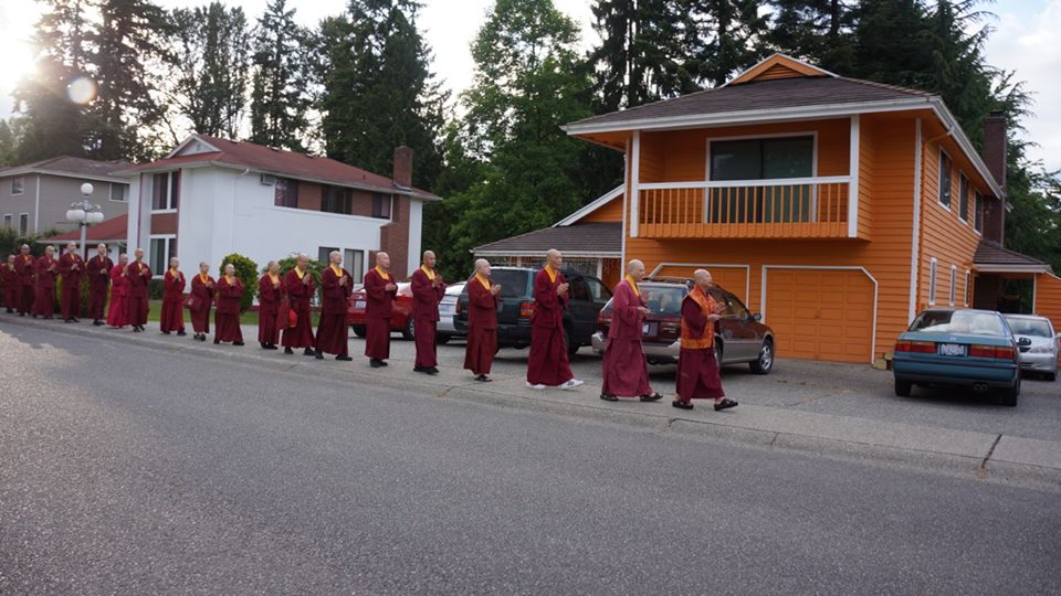 在此與大家分享,美好西城的天空下,蓮生活佛 盧師尊帶領眾弟子在〈西雅圖雷藏寺〉繞佛的情景;看著照片,耳邊彷彿還迴盪著師尊唸佛的聲音:南~摩~阿~彌~陀~佛…