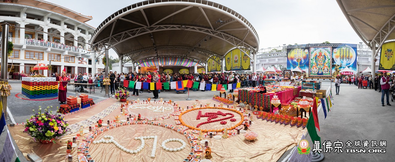 法會主尊是密教的長壽三尊,就是長壽佛、尊勝佛母、白度母。長壽佛就是阿彌陀佛、無量壽佛的化身,尊勝佛母就是釋迦牟尼佛無上頂光明的化身,白度母是觀世音菩薩的悲淚所化現,一滴化為綠度母,一滴化為白度母。