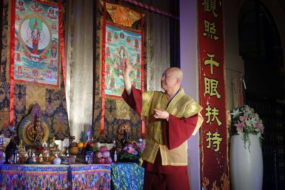 接著晚間師尊、師母與千位弟子共聚「儷園」,師尊並慈悲賜予大眾「千手千眼觀世音菩薩滿願灌頂」。