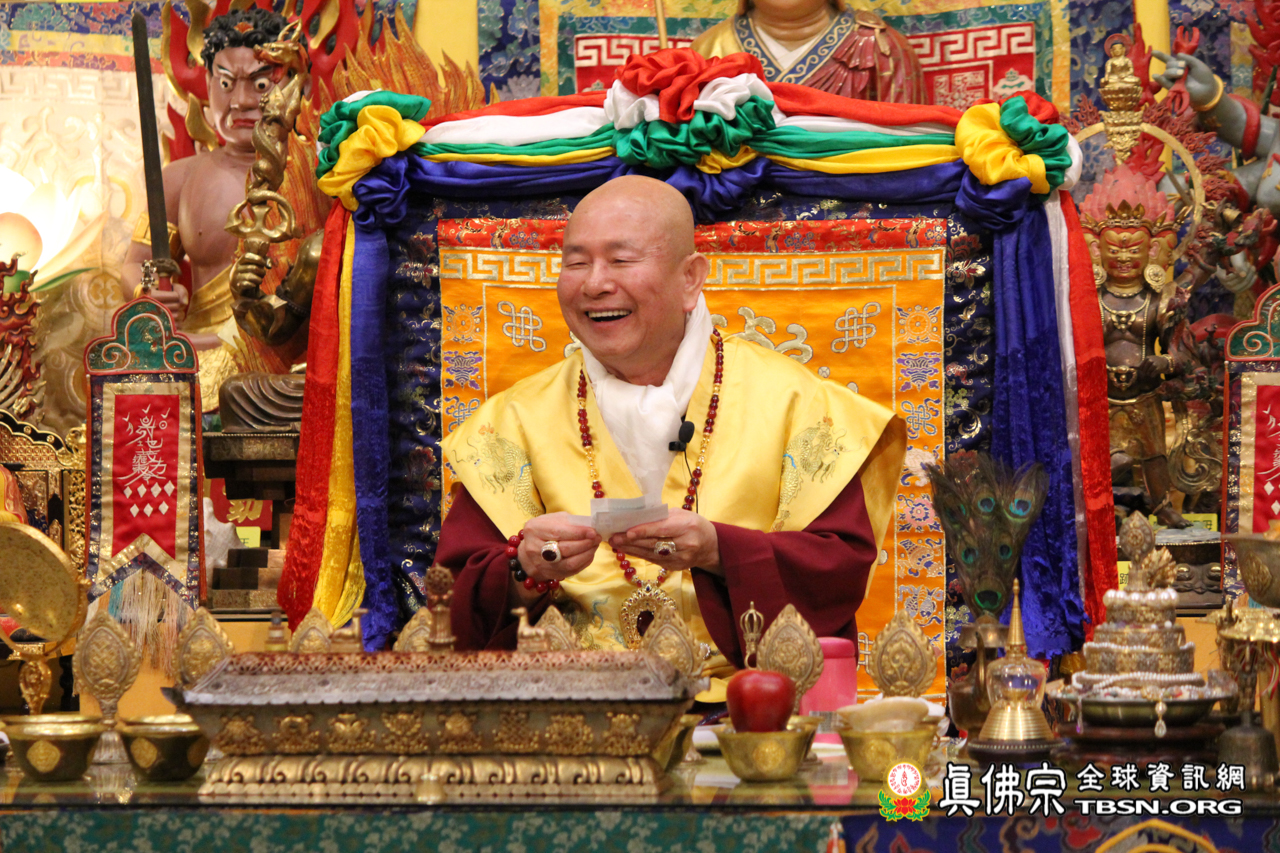 黃財神法有一個特殊的地方,以前的作法是要先點上香,再由裊裊的煙幻化為須彌山,而黃財神就住在須彌山的半山腰。半山腰屬於四天王天,黃財神為其中的多聞天王,而四天王皆為財神。天上最富有的就是四天王,海中最富有的是龍王,地上最富有的是山神與監牢地神。我們修資糧道,就是修持讓自己能夠在人間無缺、能夠定下心來好好修行、不為金錢奔波。聖尊提到越南亦有雷藏寺與上師,並且有兩位相當優秀誠實的夫妻,在台灣也見過,他們專門翻譯師尊文集成越南文,對真佛宗有很大的貢獻,目前已從越南移民至紐西蘭,正在找工作,聖尊請黃財神針巴拉和紐西蘭堂主幫助這對年輕夫妻順利找到工作。