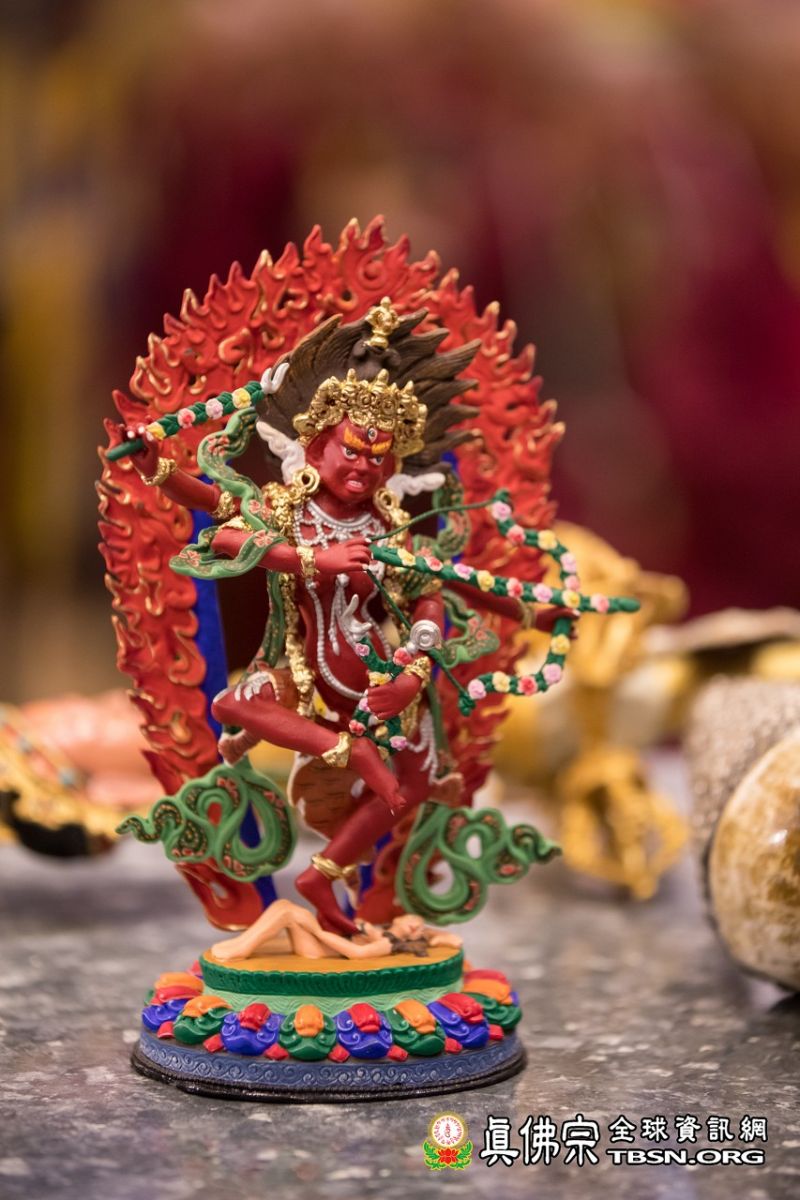 咕嚕咕咧佛母的法器有優婆羅花弓、優婆羅花箭、金剛索、金鋼鈎,法王教導,拿花弓對著十方,一一射花箭,只要被祂的優婆羅花箭射中了,心裡就會對對方產生愛慕之心;讓金剛索和金鋼鈎索住和勾住自己的家庭、索定和勾住自己最親愛的人,為小敬愛,索定和勾住台灣的人,為中敬愛,索定和勾住整個地球上的人,為大敬愛,行者會名揚四海。法王特別提醒大家,過灌頂幡時,記得將自己最重要的願望告訴咕嚕咕咧佛母,「祂會暗中幫助你,讓你圓滿成就」。