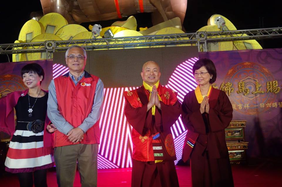 接著,蓮生活佛 盧師尊、蓮香師母與代理縣長陳志清先生伉儷一同參觀了「宗教區」《台灣雷藏寺》蓮花童子馬上賜福燈區時,蓮生法王特別以「願點亮眾生心中之燈,光明遍照」來祝福此次燈會。