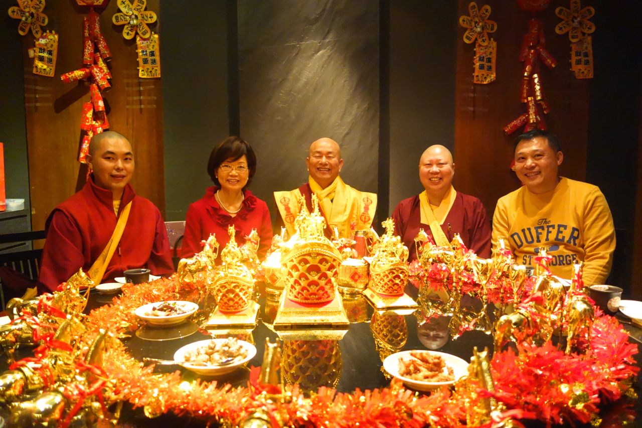 2014年2月1日(大年初二)香港〈蓮豐堂〉蓮馨上師、蓮器法師與澳門〈如實堂〉吳容基講師,黄漢華講師…等十多位弟子向師尊、師母拜年祝賀新春。
