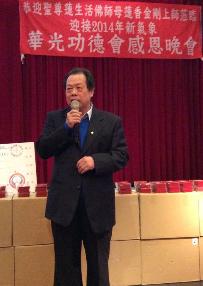 2014年1月14日晚,蓮生法王 盧勝彥師尊、蓮香師母應邀出席由台灣〈華光功德會〉理事長吳冠德聯合北區、中區、南區〈華光功德會〉舉辦迎新春的「團結感恩會」。