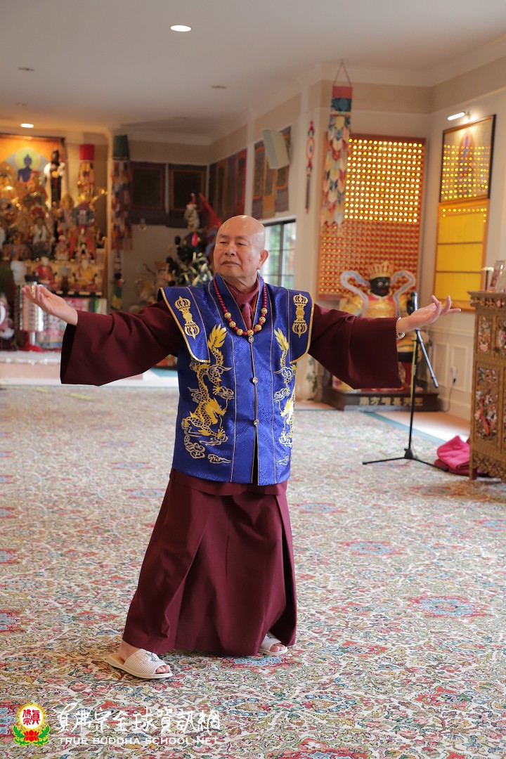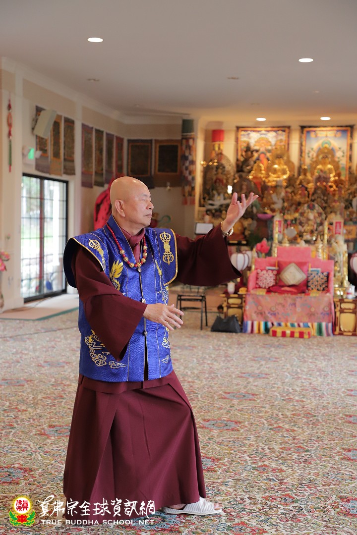 回到大殿之後,師尊提議要運動一下,於是師尊打了一套太極拳練身,也加持大家。師尊氣沉丹田,將一套太極拳打得剛柔並濟,拳法有如行雲流水,氣、神、形融為一體,進退旋轉清靈圓活,頗有大家之風範。