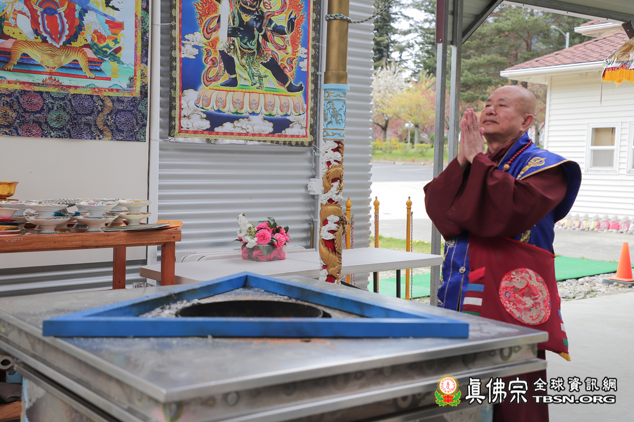 2020年4月19日下午,美國真佛宗西雅圖彩虹雷藏寺恭請根本上師蓮生活佛主壇救天災度母護摩大法會。法王於2019年4月28日應台灣南部大義學會之邀請,假高雄展覽館主壇「救天災度母護國祈福大法會」暨首傳及賜授「救天災度母不共大法」灌頂祈救天災度母能慈悲守護行者、護佑台灣,風調雨順、國泰民安。救天災度母身綠色,右手結「無畏施手印」,左手持著烏巴拉花,花上有十字金剛杵,表示降伏一切魔怨及障礙,但凡金剛杵淨光所照之處,能化解地、水、火、風等災難,使大地國土清淨光明。其外相為右足伸展,左足內踡,其意義是:右足伸展則表示其具大慈悲心,不離三界去救護眾生;而左足內踡則表示其住於智慧之空性當中,坐蓮花座。身飾天衣,種種寶飾,背有月光。頂飾阿彌陀佛,為密教二十一度母之一。