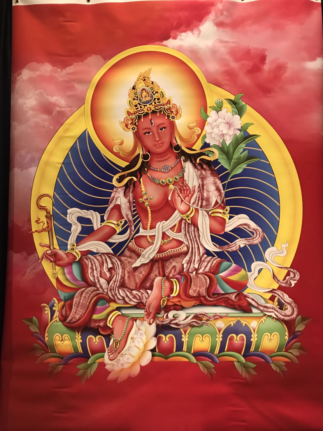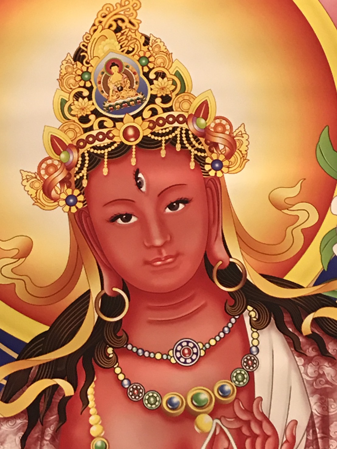 誦讚: 敬禮紅色大度母 。阿彌陀佛頂上飾。法力的一來相應。最終修成菩薩住。