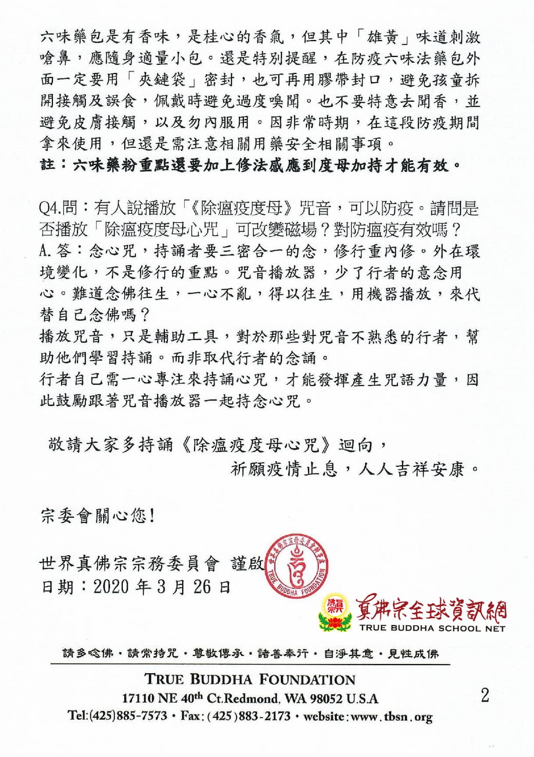 Q4.問:有人說播放「《除瘟疫度母》咒音,可以防疫。請問是否播放「除瘟疫度母心咒」可改變磁場?對防瘟疫有效嗎?