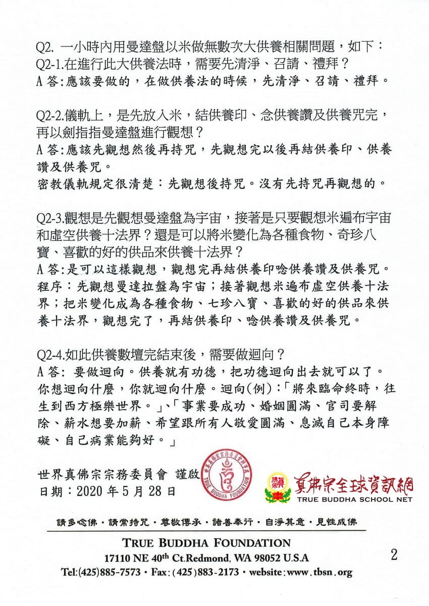 Q1.如果真佛行者已實修護摩火供達千壇以上,需再補修大曼達供養法十萬遍嗎?