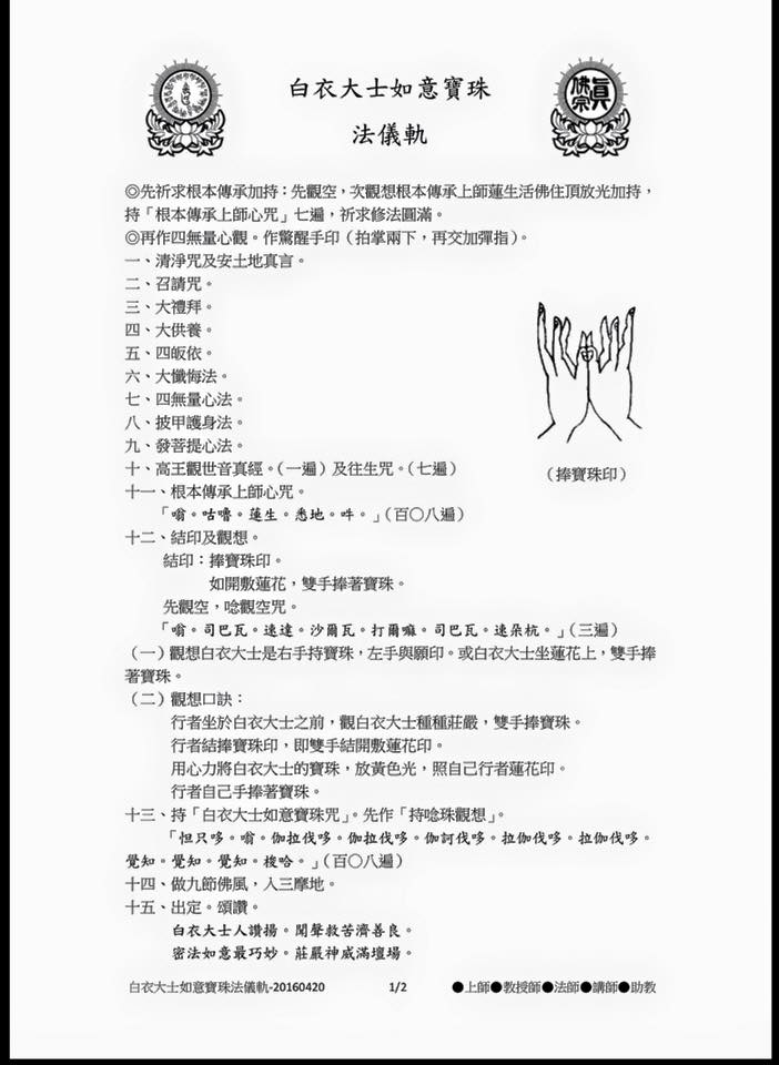 宗委會法務處已完成了《三天女問事法儀軌》、《白衣大士如意寶珠法》、《金剛手菩薩念誦法儀軌》、《普賢菩薩念誦法儀軌》修訂,查閱請上真佛宗官網TBSN,歡迎大家多加利用。
