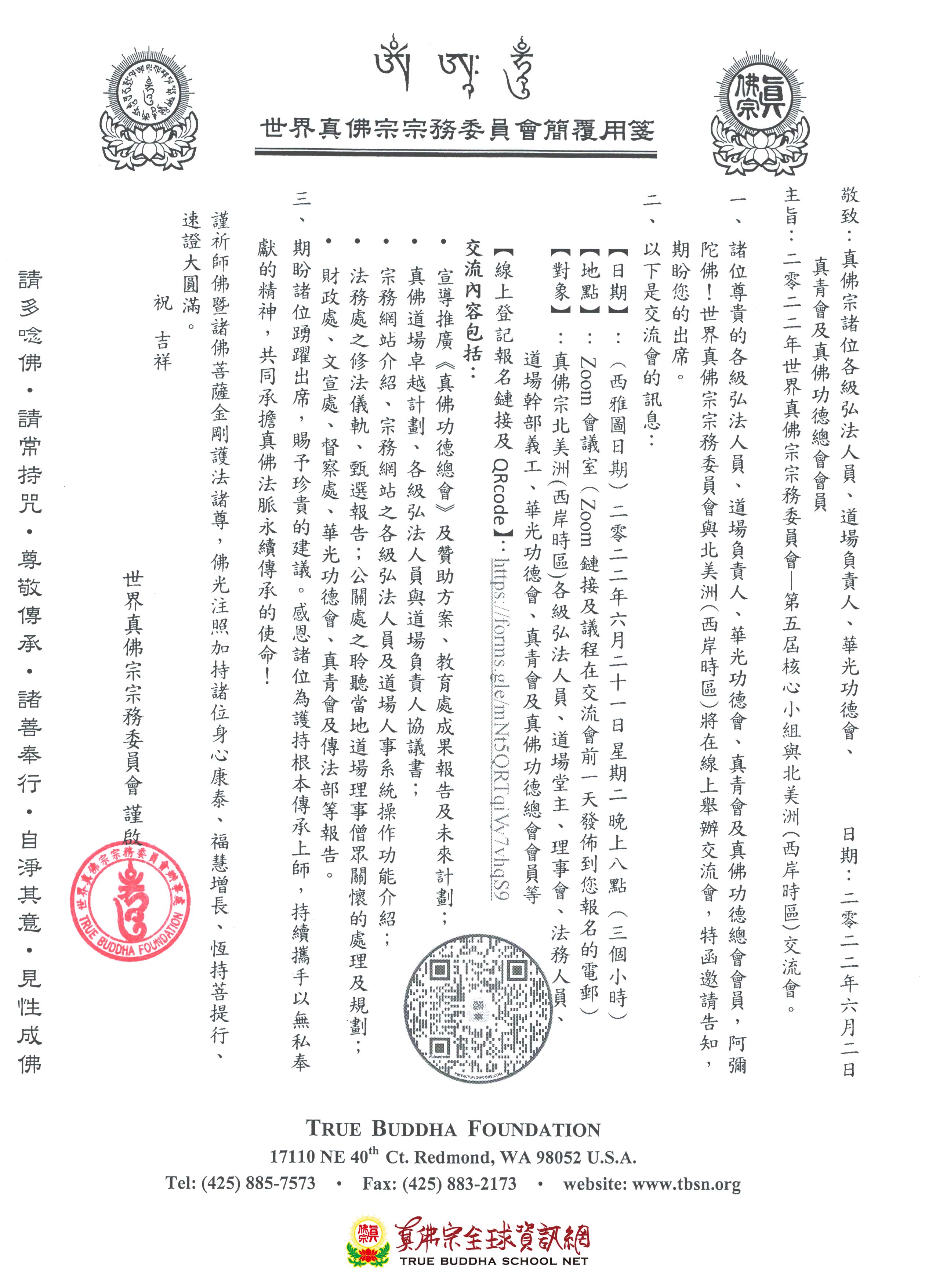 通知_2022年世界真佛宗宗務委員會—第五屆核心小組與北美洲(西岸時區)交流會