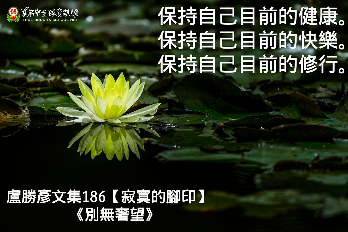 這樣就很好了,我這三個願望,不算是奢望吧!我只要健康、快樂、修行,就好了,哪裡還會去注重浮名呢!