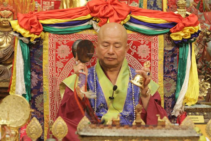 首先我們敬禮真佛宗傳承祖師了鳴和尚、薩迦證空上師、十六世大寶法王噶瑪巴、吐登達爾吉上師,敬禮壇城三寶,敬禮護摩主尊「曼殊師利耶文殊師利菩薩」。