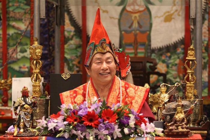 我們先敬禮傳承祖師,敬禮了鳴和尚,敬禮薩迦證空上師,敬禮十六世大寶法王噶瑪巴,敬禮吐登達爾吉上師,敬禮壇城三寶,敬禮護摩主尊「大敬愛尊愛染明王」。