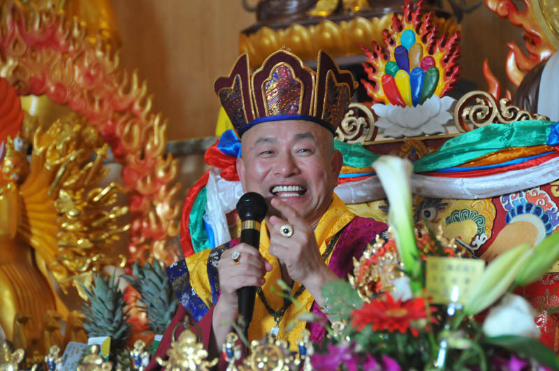 敬禮了鳴和尚、薩迦證空上師、十六世大寶法王噶瑪巴、吐登達爾吉上師!敬禮主尊時輪金剛大明王!敬禮壇城三寶!三輪雷藏寺住持蓮鎮上師、師母,還有各位上師、法師、講師、助教、堂主,各位同門,還有尊貴的各位貴賓,網路上的同門,大家吉祥!(眾鼓掌)