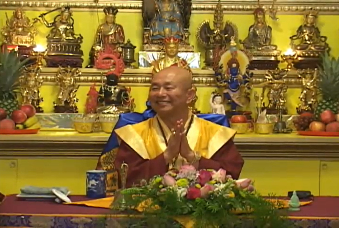 敬禮了鳴和尚、薩迦證空上師、十六世大寶法王噶瑪巴、吐登達爾吉上師!敬禮壇城三寶!師母,還有主持上師蓮主上師,各位上師、法師、講師、助教,各位同門,還有網路上的同門,大家吉祥如意!
