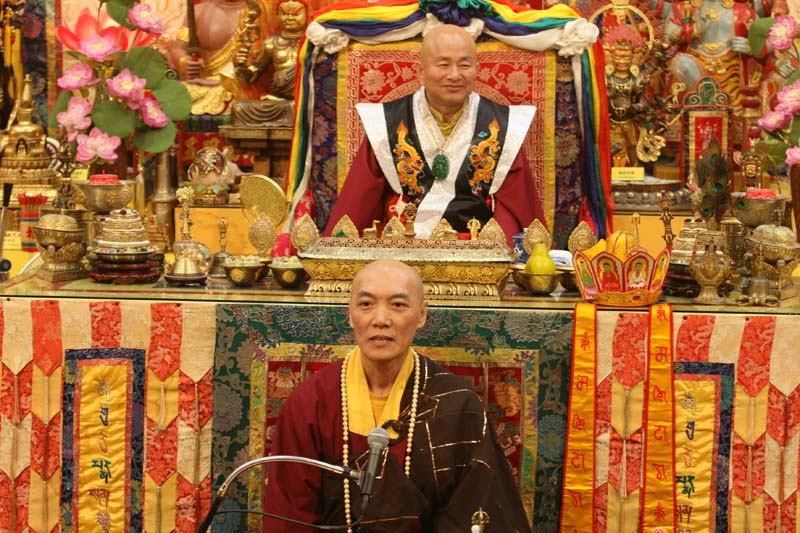 敬禮了鳴和尚、薩迦證空上師、吐登達爾吉上師,敬禮十六世大寶法王噶瑪巴。敬禮壇城三寶。主持上師、師母、各位上師、教授師、各位法師、各位同門,還有網路上的同門,大家好。