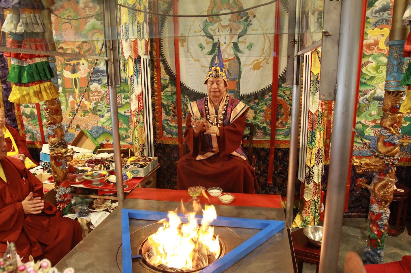 今天我們做時輪金剛護摩,時輪金剛直接跟師尊本身合一,合一的時間相當的長,時輪金剛來的力量很大,希望時輪金剛加持我們報名的所有眾等,所祈求的都能夠圓滿。
