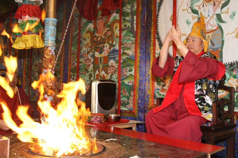 敬禮了鳴和尚、薩迦證空上師、十六世大寶法王噶瑪巴、吐登達爾吉上師,敬禮壇城三寶,一心敬禮護摩主尊「吉祥喜金剛」、「歡喜金剛」、「呼金剛」。