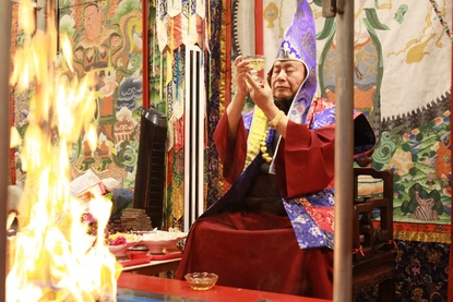 我們敬禮傳承祖師了鳴和尚、薩迦證空上師、十六世大寶法王噶瑪巴、吐登達爾吉上師,敬禮壇城三寶、敬禮今天護摩的主尊「摩利支天菩薩戰威金剛」。