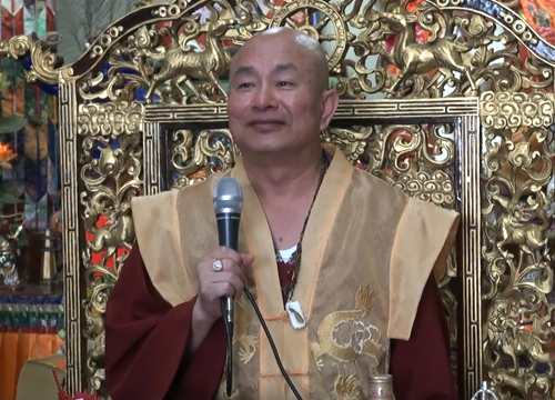敬禮了鳴和尚、薩迦證空上師、十六世大寶法王噶瑪巴、吐登達爾吉上師!敬禮壇城三寶!師母、各位上師、教授師、法師、講師、助教、堂主、各位同門,瑤池精舍的住持,大家午安!
