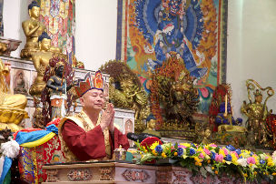 敬禮了鳴和尚、薩迦證空上師、十六世大寶法王噶瑪巴、吐登達爾吉上師!敬禮壇城三寶!敬禮護摩主尊大威德金剛明王──Yamantaka!祈請今天的護摩能夠圓滿大家的祈求,祈請大威德金剛發大威力,能夠去除一切災難,一切厄運消除,一切祈求圓滿。嗡嘛呢唄咪吽。