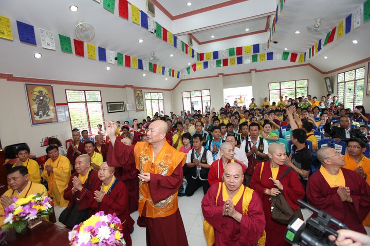 我們先敬禮傳承祖師了鳴和尚、薩迦證空上師、十六世大寶法王卡瑪巴、吐登達爾吉上師,敬禮三尊雷藏寺壇城三寶。師母,各位上師、教授師、法師、講師、助教、堂主,各位同門,還有我們的貴賓山口洋市市長Hasan Karman,三口洋宗教區事務長Supati先生,Selamat Siang!