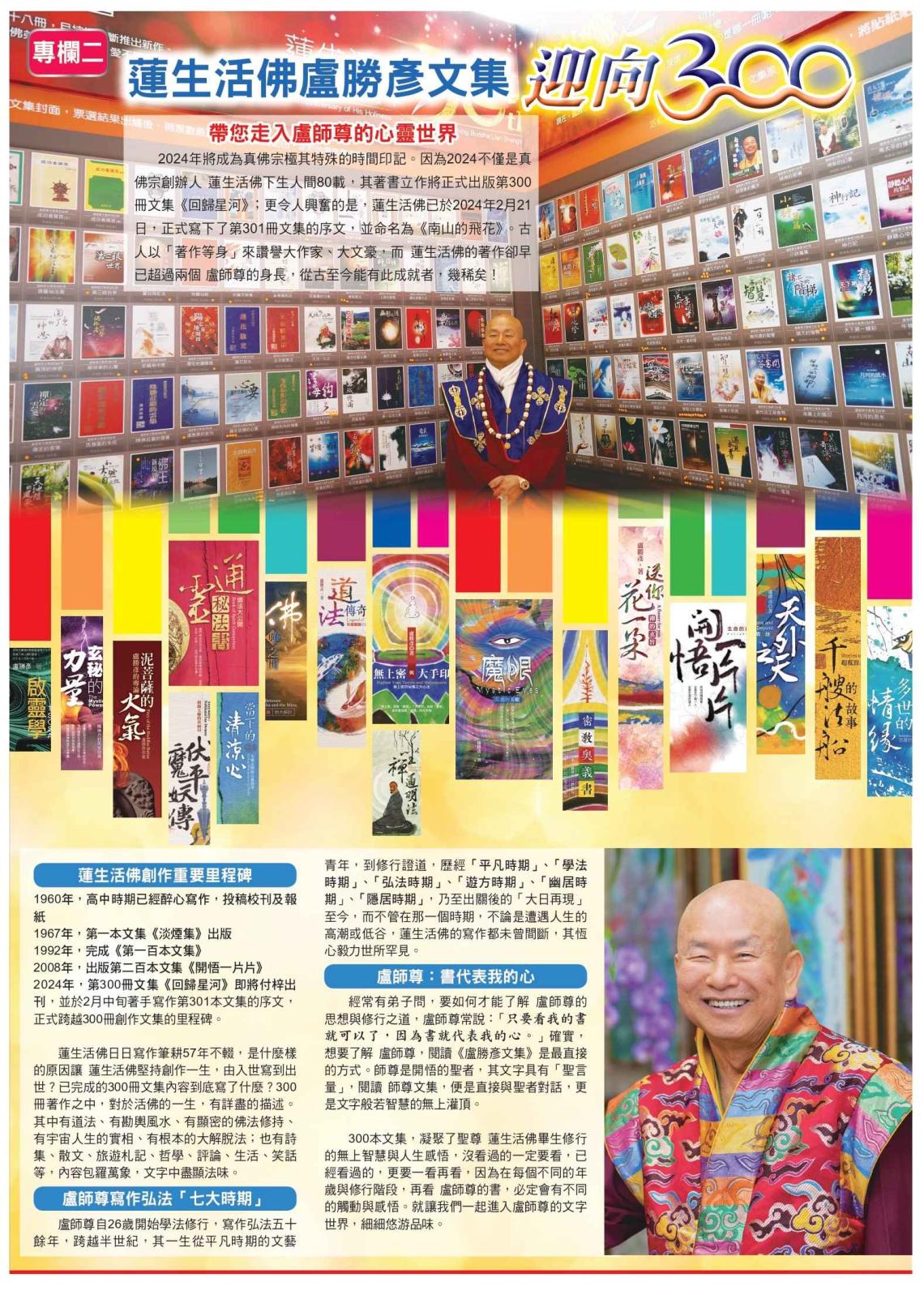 為慶祝「2024 蓮生法王佛誕」暨 師尊文集寫作迎向 300 雙喜大慶,今期真佛報雙頁預告聖尊蓮生活佛的傳奇一生,大家請快來看 師尊的精彩照片吧!