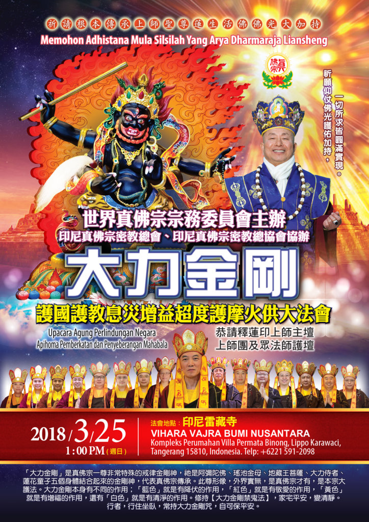 此次印尼全國性大法會,可謂陣容強大,前所未有。我們祈望全印尼所有的道場全都動員起來,一起前來護持,並參與這殊勝難得的大法緣。當然也歡迎全世界的真佛行者蒞臨印尼雷藏寺,同沾法益。