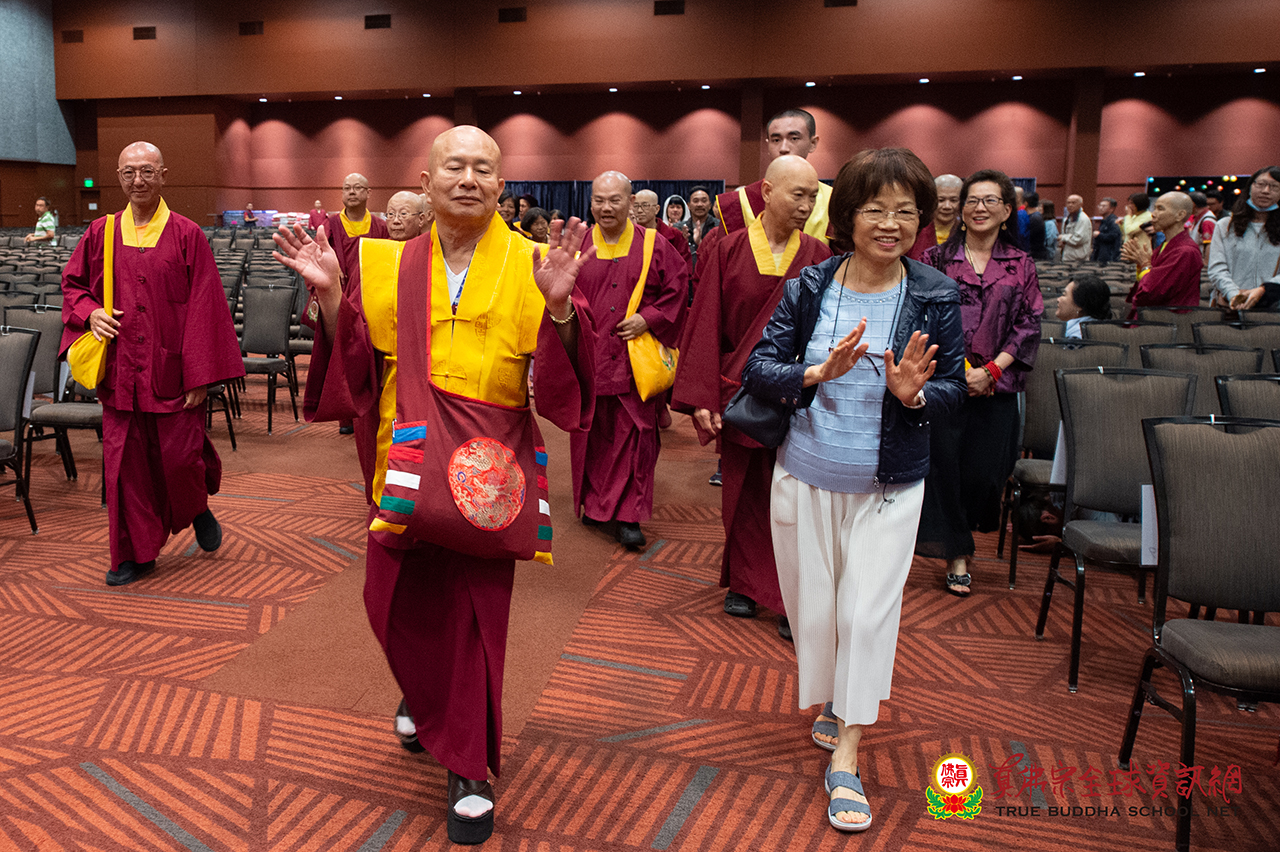 2019年8月23日晚上,西雅圖秋季大法會前夕,蓮生法王於梅登堡會議中心法會會場加持壇城。