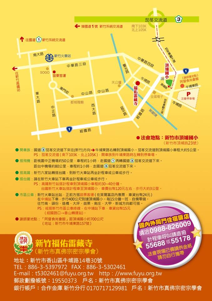 法會訂於新竹頂埔國小舉行,地址是新竹市頂埔路23號。